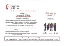 El martes 18 de abril a las 12:00 h la Fundación Francisco Largo Caballero, en Madrid, presentará en el Consejo Económico y Social de España (calle Huertas, 73) el libro colectivo ¿Cobraremos la pensión?. Para más informaciones, lean el folleto adjunto.